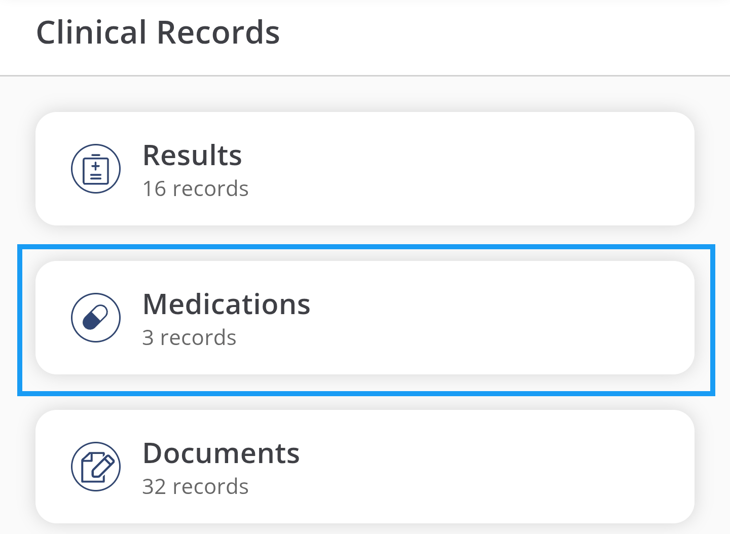 - If you are using a mobile device: Tap on the Medications section in Clinical Records to open the list.