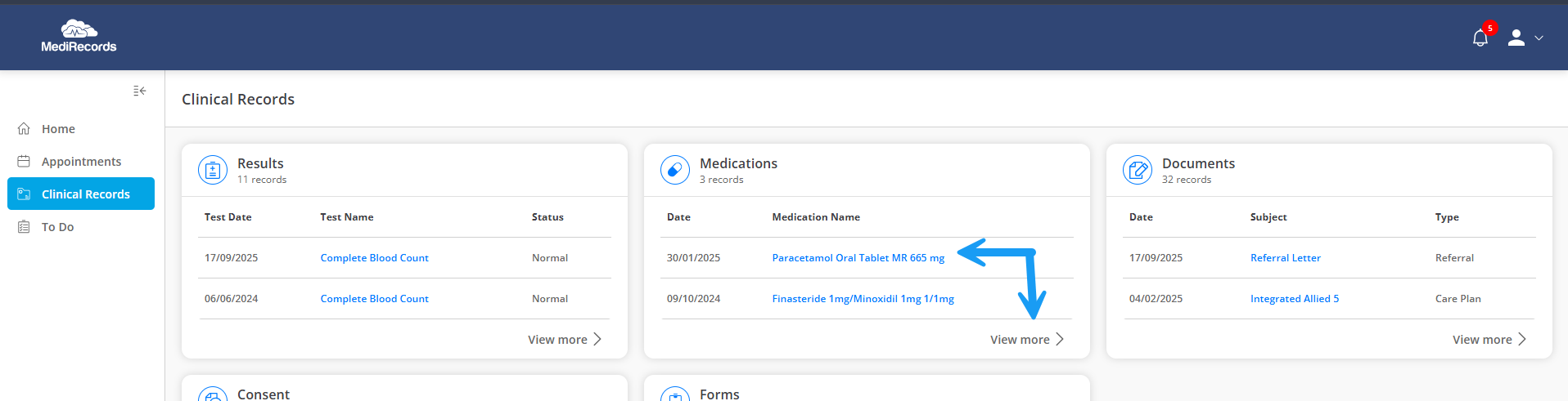 - If you are on a laptop or desktop: Click on the Medication name or on View More to see all of your Medications.