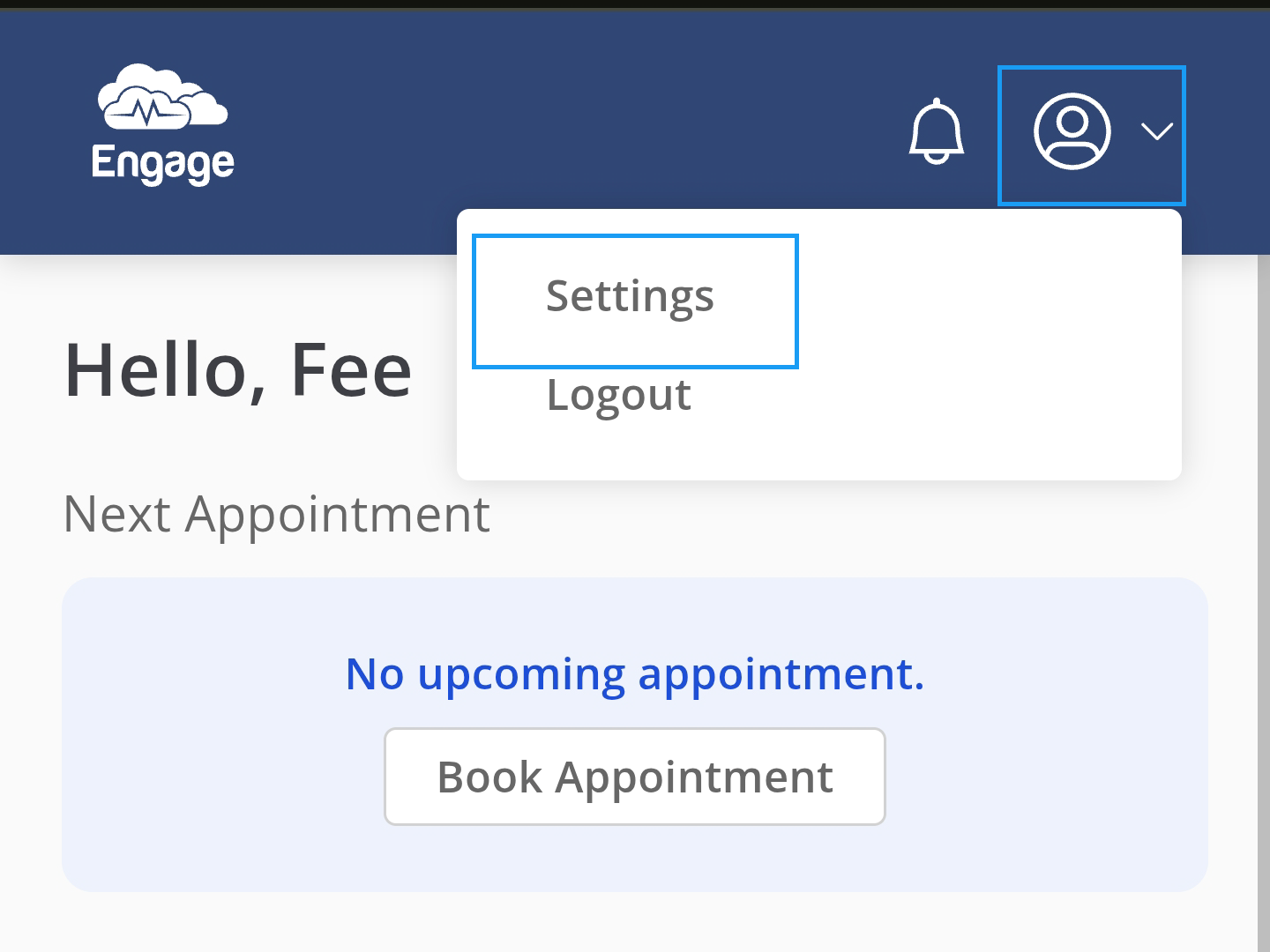 You can access your Settings at any time by tapping on the Profile icon in the top-right hand corner of Engage, and tapping on Settings.
